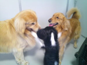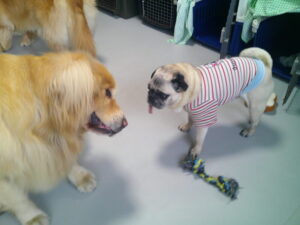 ゴールデンレトリーバーのちょこちゃん、ミニチュアダックスのコナちゃんと一緒に♡ 今夕元気にお家に帰えりました♪ 仲良しのルーナナヌーと暴れ回って遊んだり(^^♪ キャバリアのじげんちゃんやパグのマロニーちゃんと仲良く遊びました(^^♪