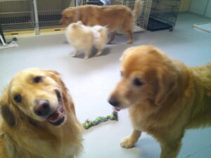 ゴールデンレトリーバーのわくちゃん、パグのマロニーちゃん、ポメラニアンのプルちゃん ~横浜ペットホテル~