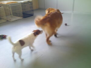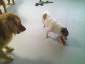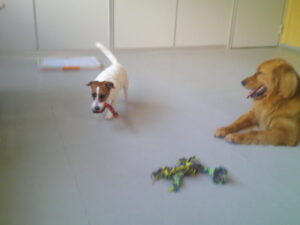 ジャックラッセルのはちちゃん、お泊り中にルーナナヌーとも仲良しに💛 デンタルボール遊びも大好きで、ボールを追いかけて走り、 ふわふわするパンのおもちゃにも夢中で遊びました(^^♪