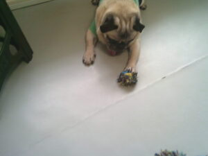 パグのマロニーちゃん、今日もデンタルボールに夢中♪