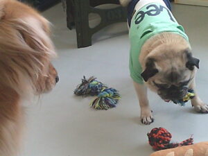 パグのマロニーちゃん、今日もデンタルボールに夢中♪ ルーナの気配にちょっと緊張‼、大事なデンタルボールを持って行かれるかも⁇ …続きを読む