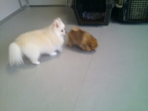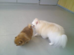ポメラニアンのモフちゃん、モカちゃん、グルーミングと部分カットで来店です♪ モカちゃんは3ヶ月のパピーちゃん、気はとても強そうです♫ お兄ちゃんのモフちゃんは、動き回るモカちゃんが心配な様で、付いて歩いてました💛