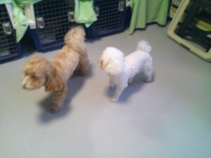 マルプーのれもんちゃん、トイプードルのモカちゃん、二人ともとても活発! 気が合ったふたり、仲良く遊びました(^^♪ ワンちゃんが少し苦手なおとちゃん、傍にトイプードルのココアちゃんが居ても知らん顔(-_-;) あくまでも関わりたくない様子でした💦