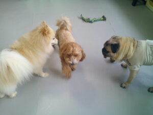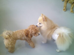 マルプーのれもんちゃん、ポメラニアンのプルちゃん、パグのマロニーちゃん、 皆いつも会っているお友達です♡ ルナナヌーも一緒に皆で仲良く遊びました(^^♪