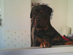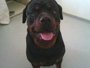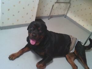 ロ.ト.ワイラーのラルフちゃん、57㎏超大型犬です♪ 久しぶりのお泊まりで、小さな子達とも遊びたい様子でしたが♫ ひとりで奥のお部屋で過ごしました(^^♪
