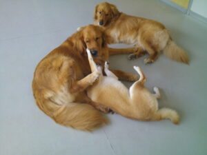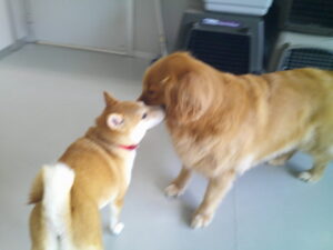 豆柴のもなかちゃん、どのワンちゃんとも元気に暴れ回って遊んでいたのですが♪ 2歳近くなって柴犬の気質が出て来たのでしょうね❕ ワンちゃん達とは全く仲良く遊ぶのが無理になりました(-_-;) ルーナナヌーとは幼い頃から遊び♫ ゴールデンレトリーバーの闘争心のない気質への安心感もあって♡ 以前と変わらず遊びまわっていました(^^♪